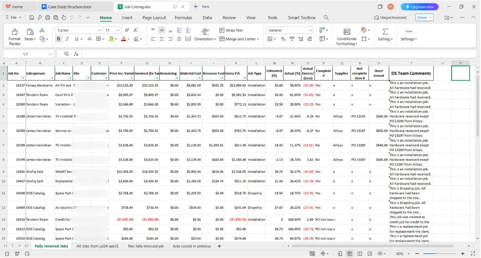 - Creating comprehensive job cost models in SimPRO, covering all materials, consumables, and labor hours.