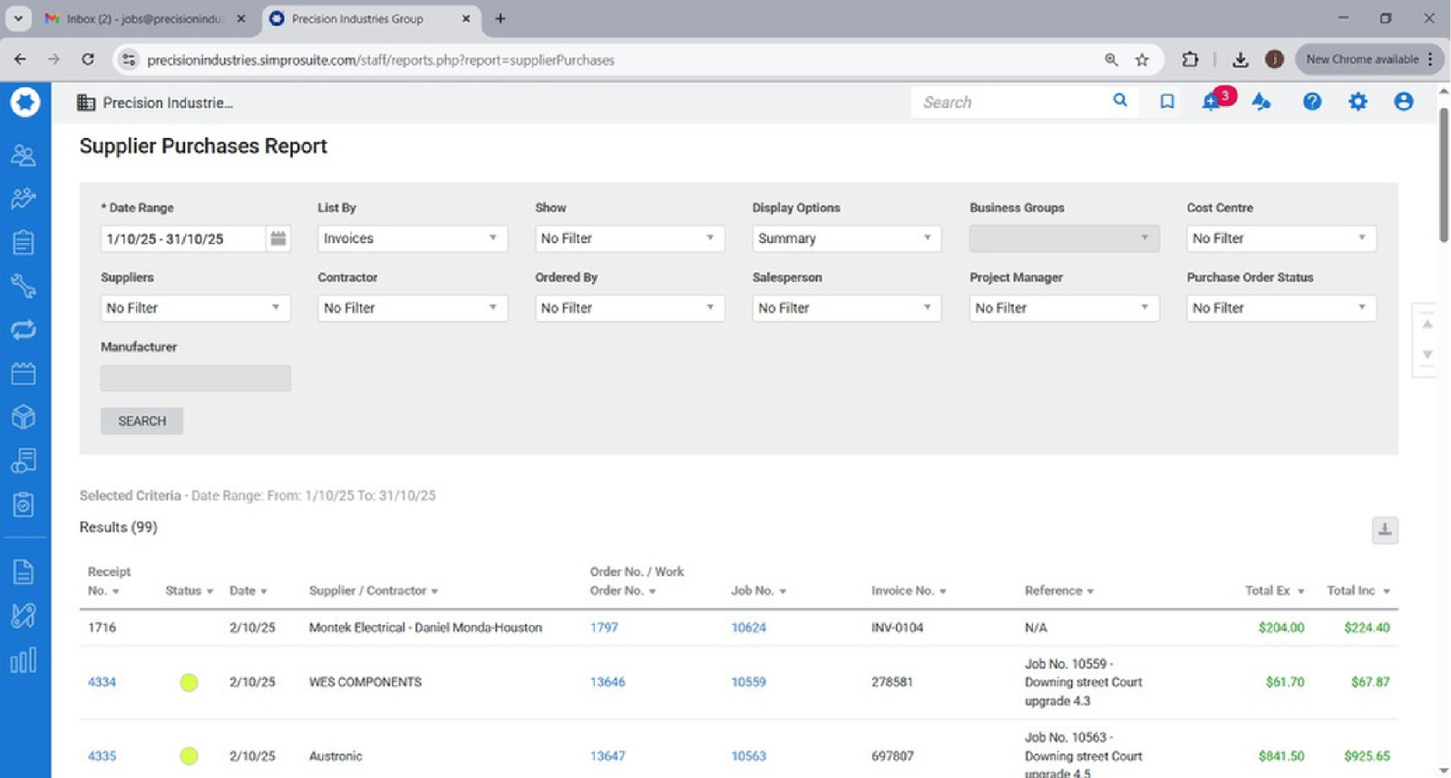 - Coordinating with the Sydney technical team to validate supplier rates, approve purchase orders, and manage site-specific delivery logistics.