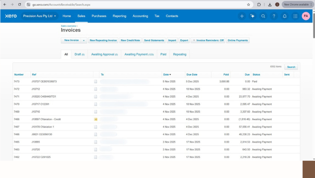 - Implementation of a fully synchronized SimPRO–Xero workflow, improving reconciliation accuracy to 99%.
