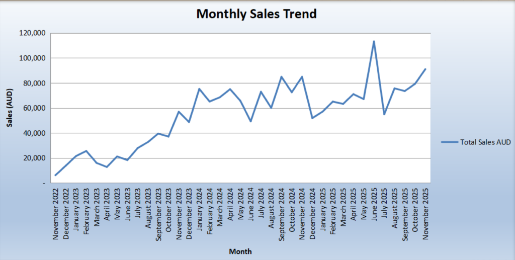To give the client a clearer picture of their business, We built a structured Sales & Customer Analysis workbook using data from November 2022 to November 2025. The goal was simple: